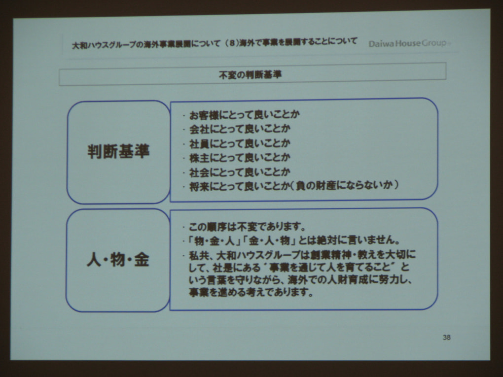 第1部では、芳井敬一取締役常務執行役員より「大和ハウスの海外戦略について」というテーマで講演が行われました。
