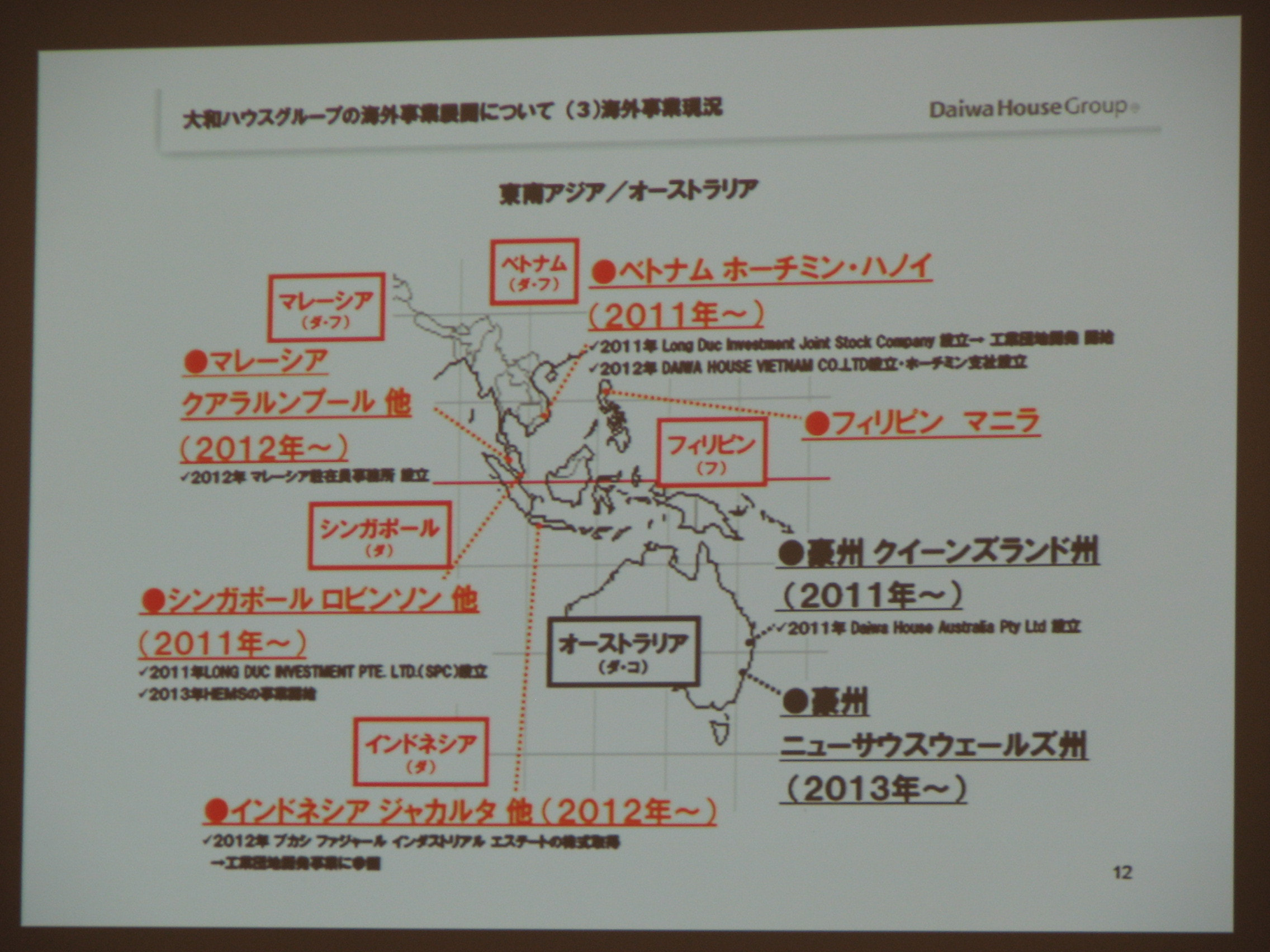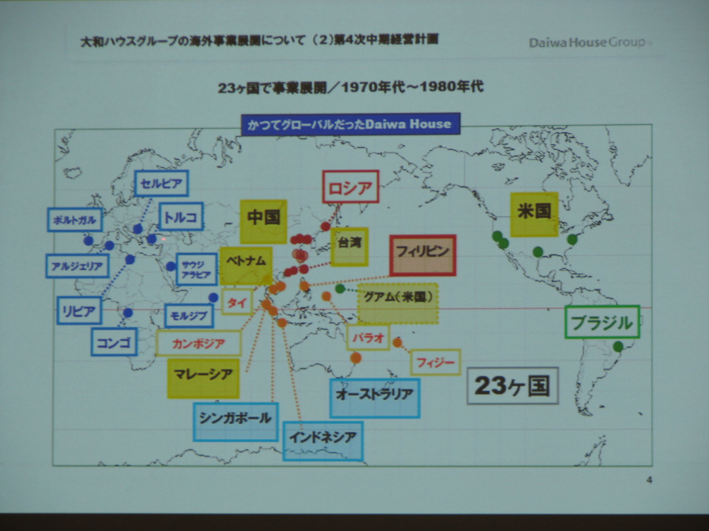 当社の過去の海外進出の歴史から、今後の展開について幅広い内容でした。近年は東アジア・東南アジア諸国への進出が目立ってきていますが、今まで実に23ヶ国へ進出した実績があり、まさに先輩方が築いた土台が、今、海外進出の大きな原動力になっています。