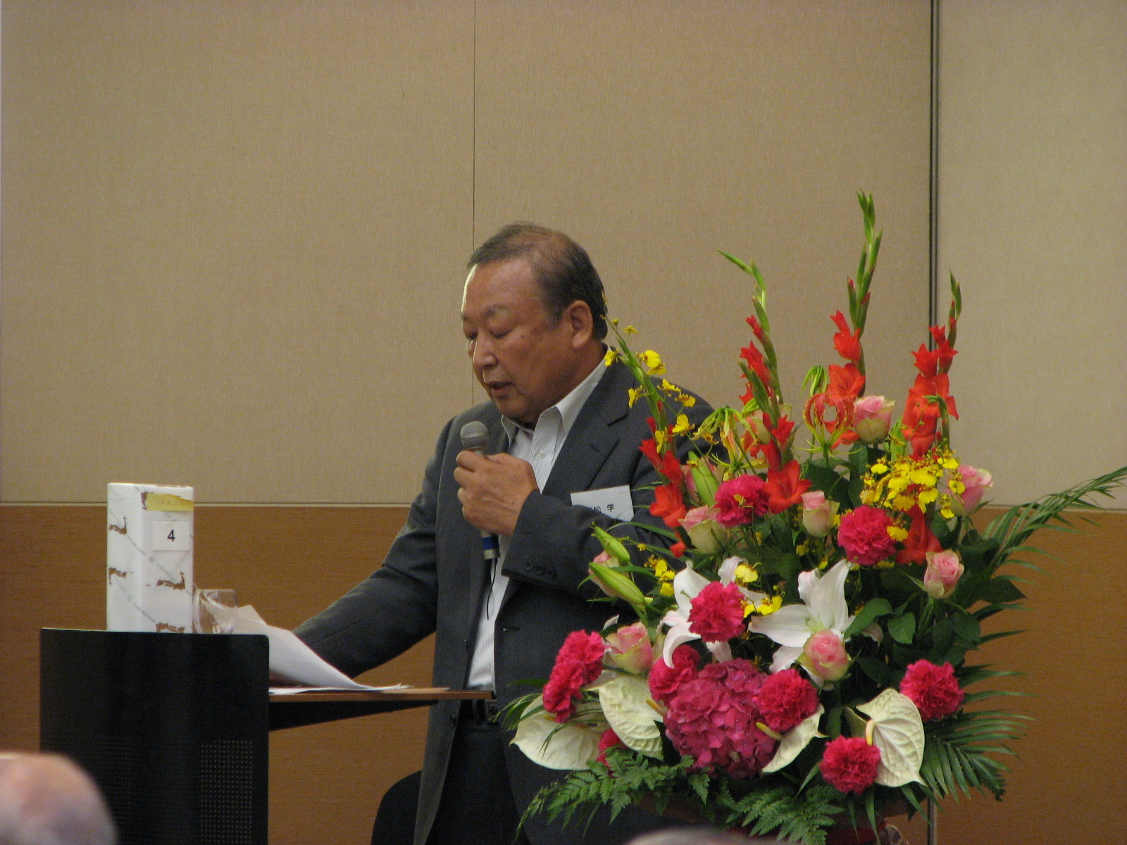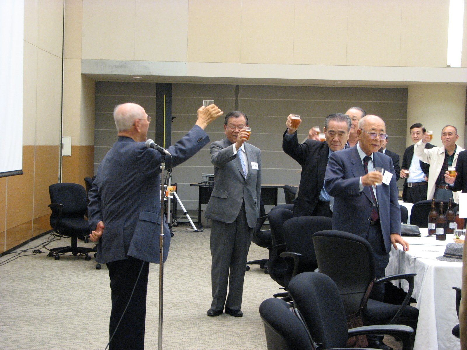 懇親会の最後には特別ゲストとして、ビクターレコードの民謡歌手である三宅良二氏にお越しいただきました。民謡や相撲甚句などを披露していただき、大変な盛り上がりを見せ、活気のある懇親会となりました